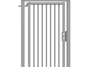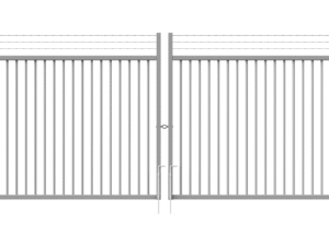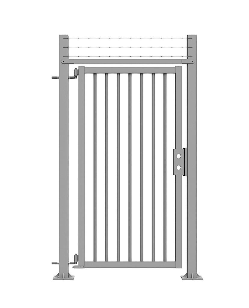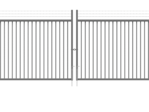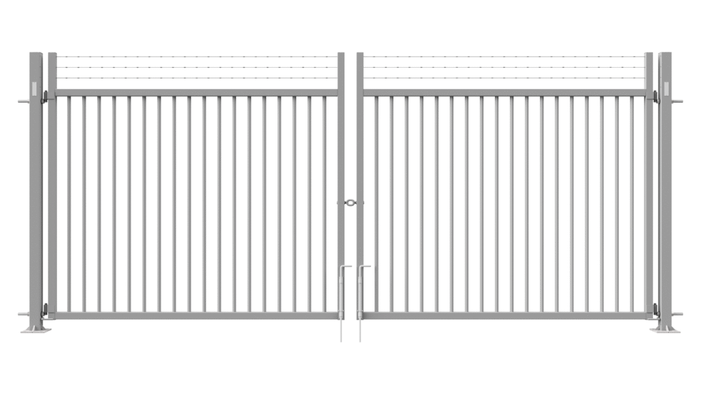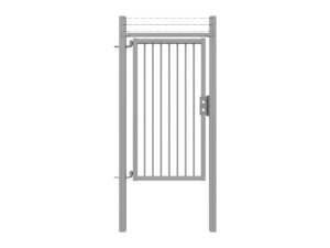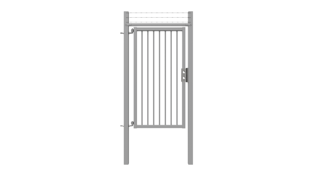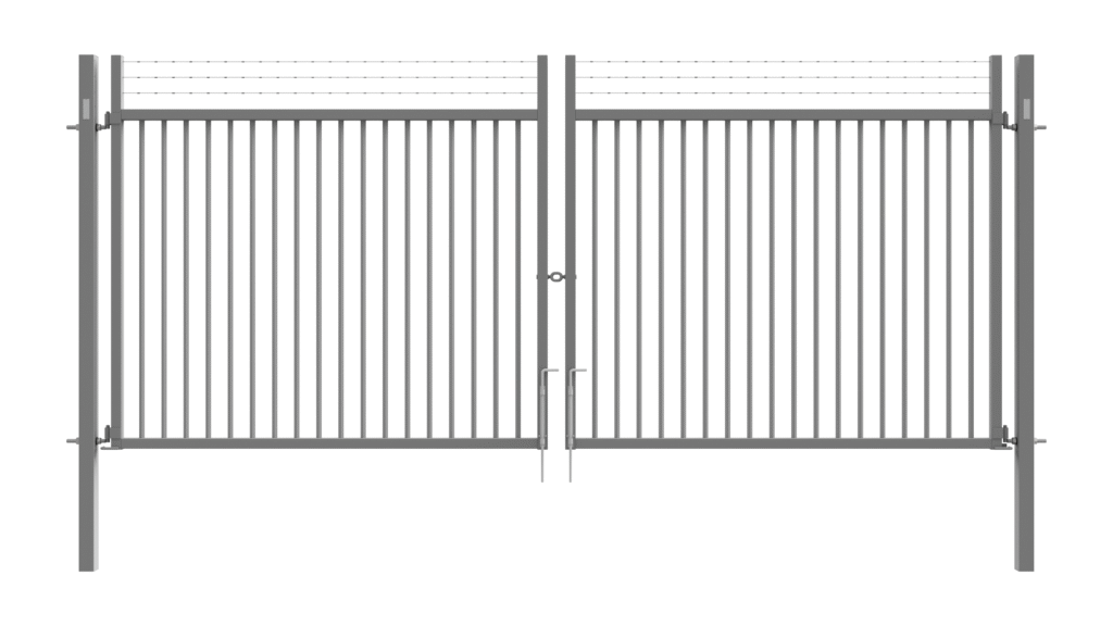 Double swing gates are prepared for padlock and have L-shaped hinges in M24. Pedestrian swing gates are prepared for the Assa lock system and also have a horizontal profile above the wing, allowing installation of a gate closer.