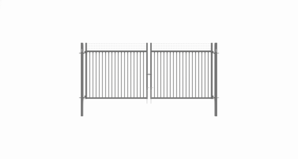 Dubbla slaggrindar, utrustade med Locinox-gångjärn av typ GBMU-B-M22. Som standard är grindarna förberedda för hänglås.